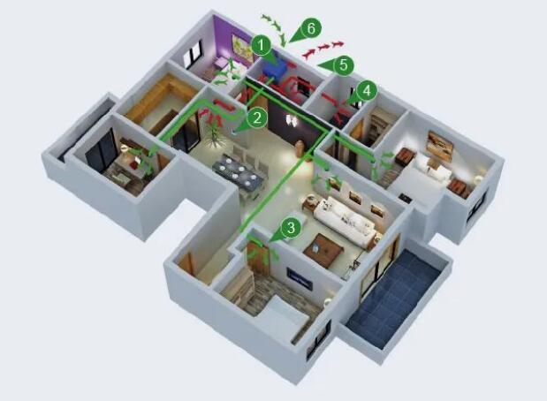 在次區(qū)域,即餐廳、過道、衛(wèi)生區(qū)域、廚房等污染相對(duì)嚴(yán)重的地方,安裝排風(fēng)口或廚房專用排風(fēng)口,VIVA'O HEP機(jī)組為家人排出污染空氣 ,完美實(shí)現(xiàn)清新空氣的持續(xù)循環(huán)。