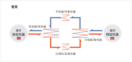 冬天的時候,室外機吸收室外的熱量帶到室內(nèi)釋放。